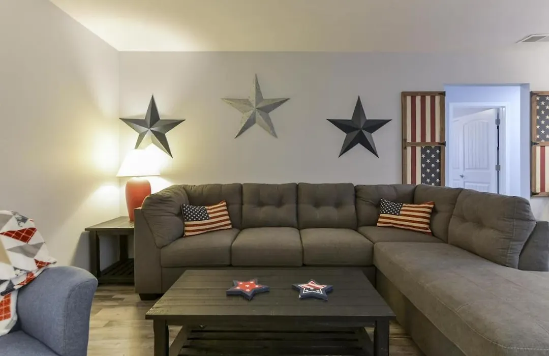 Die Gäste können mediale Annehmlichkeiten wie WLAN und ein Fernsehen mit mehreren Kanälen sowie ein Bügeleisen/Bügelbrett und eine Klimaanlage genießen. Die 2-Zimmer- Patriot Place- Walk-In No Stairs verfügt über ein Badezimmer mit einer Badewanne. Badezimmer sind auch mit einem Haartrockner, einem Wäschetrockner und Handtüchern für Ihren Komfort ausgestattet.